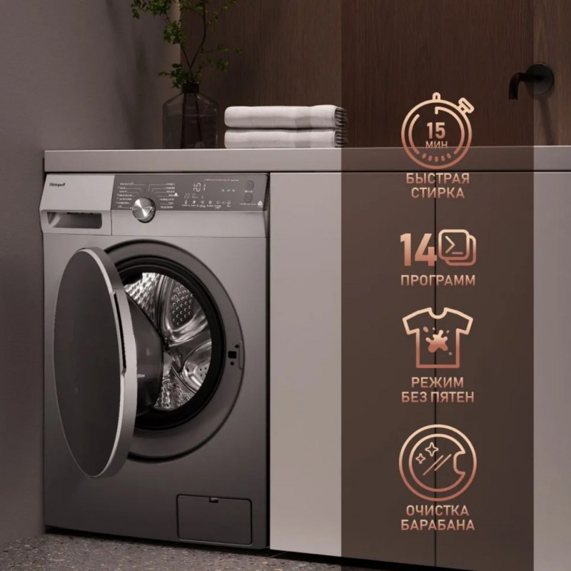 Отдельностоящая стиральная машина автомат Weissgauff, выполненная в цвете "серебристый металлик", оснащенная инверторным двигателем, работающим по особой технологии BLDC, имеет поистине фантастический показатель загрузки до 12 кг белья и внушительную скорость отжима до 1400 оборотов в минуту - это гарантия по-настоящему высокого результата при каждом запуске цикла стирки вашего белья.