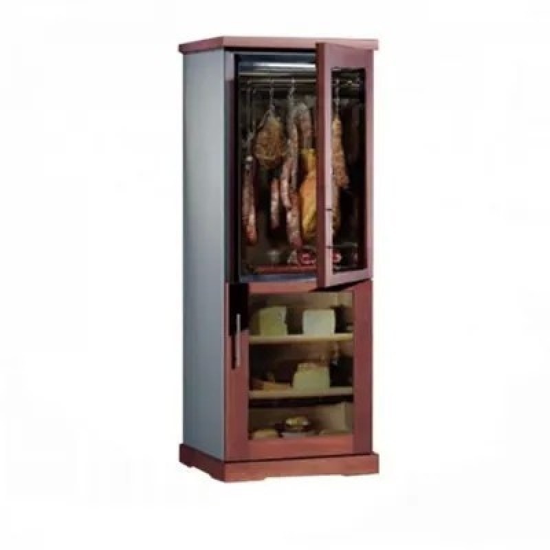 Винный шкаф IP Industrie SAL 601 CEX NUХолодильный шкаф двухкамерный SAL 601 CEX NU вместимостью 60+40 кг оснащен подвесными кронштейнами для оптимального хранения колбас и сыров.Холодильник IP Industrie SAL 601 CEX NU оборудован высокопроизводительным компрессором Secop и дверями с двойным стеклом с защитой от ультрафиолетовых лучей.Статическая система охлаждения и автоматизированная система подогрева обеспечивают оптимальную температуру и необходимую влажность внутри камеры.Холодильный шкаф IP Industrie обеспечивает планомерное дозревание,сохранение вкусовых качеств колбас и сыров.Стильный стальной корпус эксклюзивного дизайна с панелями из ценных пород дерева успешно дополнит любые интерьеры.Распашные двери, удобные выдвижные полки позволяют легко быстро выбрать колбасы и сыры.Отличительные особенностиДве зоны охлаждения (независимые)Температурный режим от 4°C до 18°CДва компрессора SECOP (Danfoss)Хладагент R134aОхлаждение статическоеЭлектронный термостат с цифровым дисплеемЭкономное потребление электроэнергии и низкие расходы на эксплуатациюАвтоматическое размораживание нетЗимний режим: даЗамок: даТип установки отдельно стоящийФункциональные особенности:Материал: Корпус - металлический с заводским покрытием и отделкой ценными породами дереваДвери - распашные, двойное стекло в металлической рамке с отделкой деревомПолки - стандартные 2 шт.Вместимость. Общая 100 кгВерхняя камера 60 кгНижняя камера 40 кг