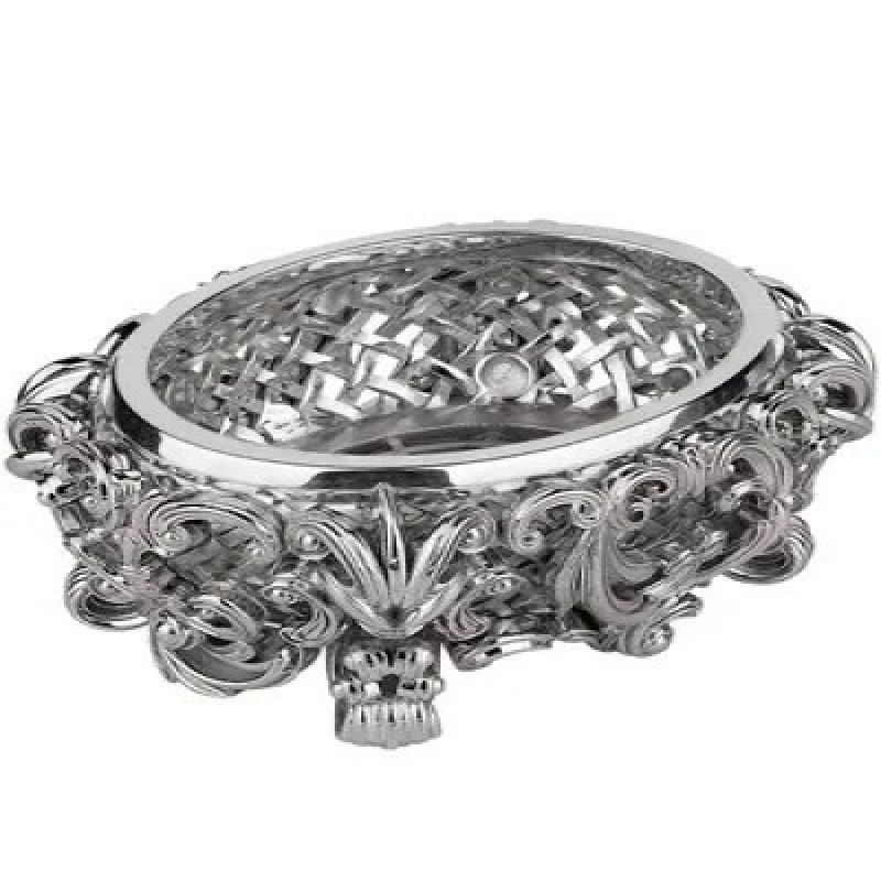 Серебряная шкатулка для ювелирных украшений выполнена из серебра 925 пробы с родированием. Высота 80 мм, длина 95 мм, ширина 77 мм.