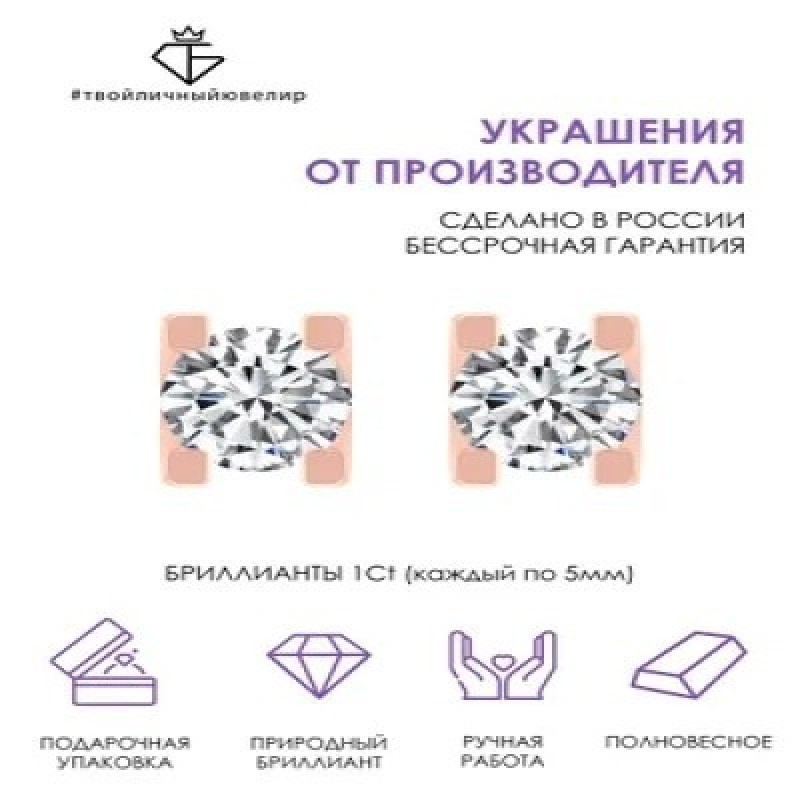 Золотые пусеты - гвоздики  с бриллиантами бренда ТВОЙЛИЧНЫЙЮВЕЛИР наполнены мощной энергетикой - подойдут для девушек и женщин, которые выбирают яркость и эффектность. Роскошное и в то же время лаконичное ювелирное украшение, выполненное из розового золота 585 пробы, подчеркнет Вашу неповторимость и откроет новые возможности для стильных экспериментов. В качестве вставки в серьгах используются бриллианты, способные на свету переливаться всеми цветами радуги и издавать невероятный блеск, придавая своей обладательнице женственность и элегантность. Дизайнерские сережки пусеты, выполненные опытными ювелирами России, оснащены удобной и надежной винтовой застежкой, которая обеспечивает прочную фиксацию ювелирного изделия на Вашем ушке. Тип конструкции делает золотые серьги самыми удобными - они не мешают одеваться, не цепляют волосы и, при правильном подборе размера, не доставляют дискомфорта во время сна. Именно по этой причине серьги из золота часто выбирают не только для взрослых девушек, но и для маленьких модниц. Благодаря минималистичному, продуманному дизайну серьги-гвоздики можно легко сочетать с любыми другими украшениями и нарядами. Такие пусеты из золота никогда не выйдут из моды и всегда будут актуальны. Сережки-гвоздики – одни из самых популярных моделей, они универсальны, и их легко подобрать под любой типаж и образ, стиль одежды, возраст владелицы. Аккуратные и практичные пусеты с бриллиантом - это универсальное украшение для любого образа:  на деловой встрече в комбинации со строгим офисным нарядом, на романтическом свидании, и даже на роскошном приеме. Небольшой размер сережек подчеркивает женственность владелицы и ее элегантность при любых обстоятельствах. Бриллиантовые пусеты идут всем без исключения: блондинкам и брюнеткам, смуглым и светлокожим девушкам, голубоглазым и кареглазым. Если вы хотите быть в центре внимания или же ищете украшение на торжественное мероприятие, то серьги с драгоценными камнями — это ваш вариант! Пусеты поставляются в брендированной упаковке и идеально подходят в качестве замечательного подарка на особую дату или просто так, чтобы восхитить и удивить любимую жену, маму или дочку и оставить неизгладимое впечатление. Купив ювелирные изделия от производителя ручной работы, вы получаете бессрочную гарантию! С любовью и заботой о Вас, ТВОЙЛИЧНЫЙЮВЕЛИР!